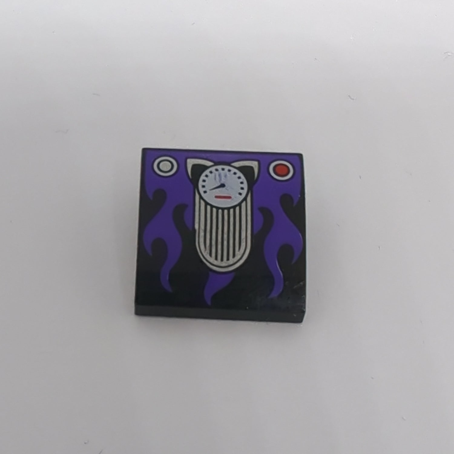 2x2 Halbbogenstein flach keine Noppen mit Katzenohren Tachometer und dunkelviolettem Flammenmuster bedruckt schwarz black