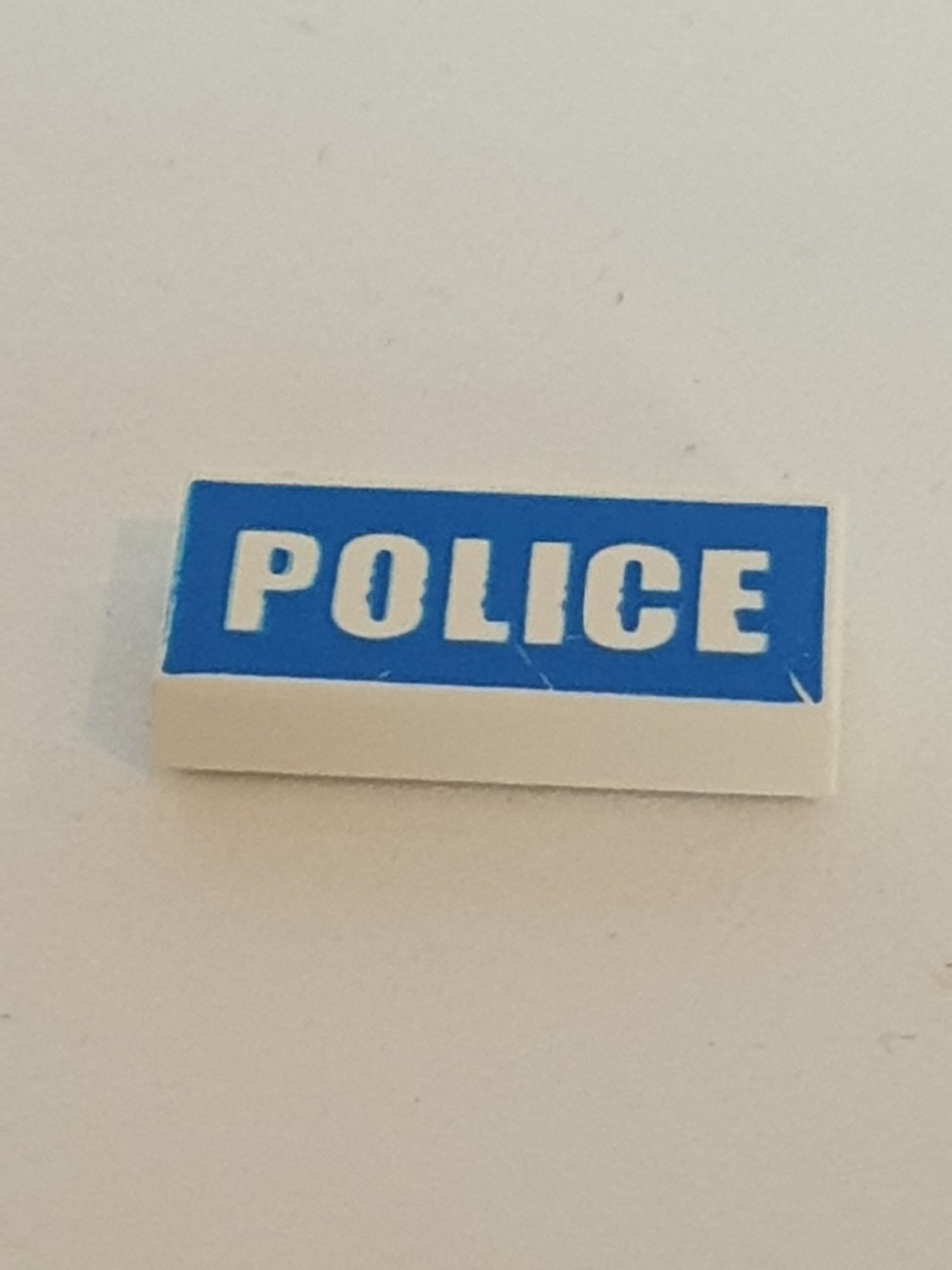 1x2 Fliese bedruckt mit Police blau auf weiß white