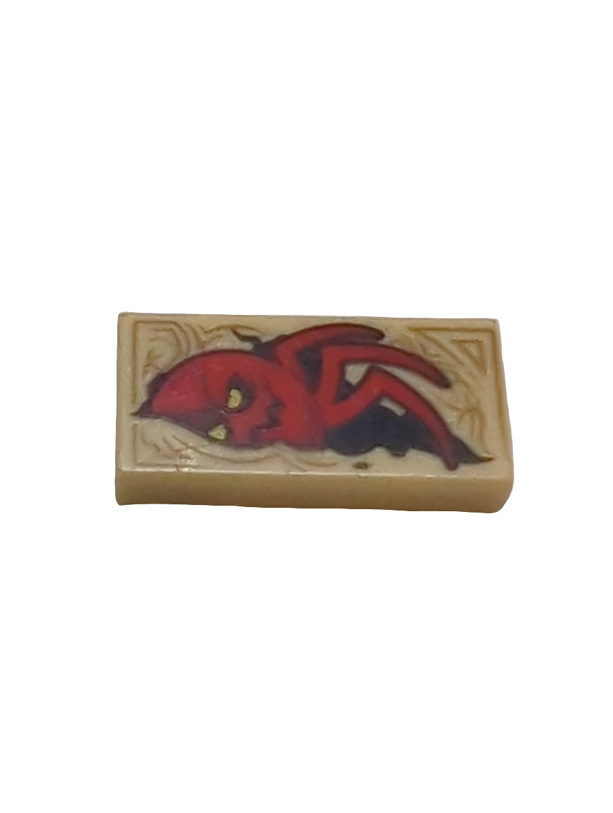 1x2 Fliese bedruckt with Dark Tan Markings and Red Spider Monster with Yellow Eyes Pattern (Nexo Knights Book of Revenge) beige tan