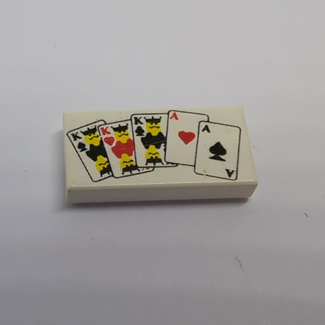 1x2 Fliese bedruckt with Playing Cards Full House Pattern weiß white