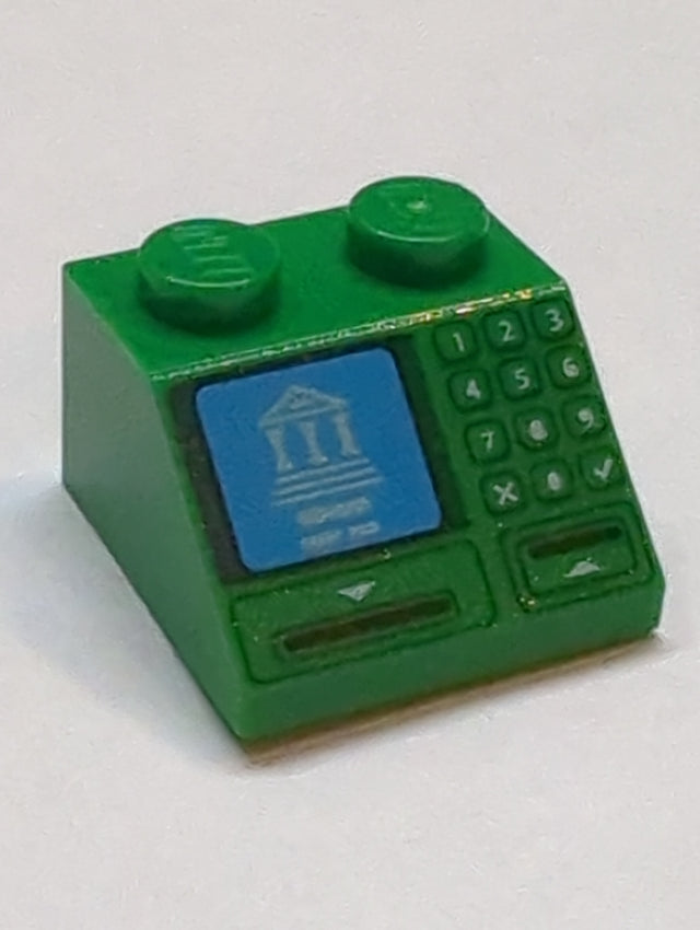 2x2 Dachstein 25° bedruckt mit Building on Blue Screen, Card Slot and Keypad Pattern grün