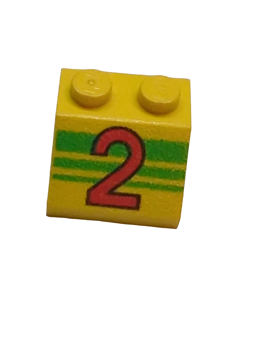2x2 Dachstein 45° bedruckt with Red Number 2 and Green Stripes Pattern gelb yellow
