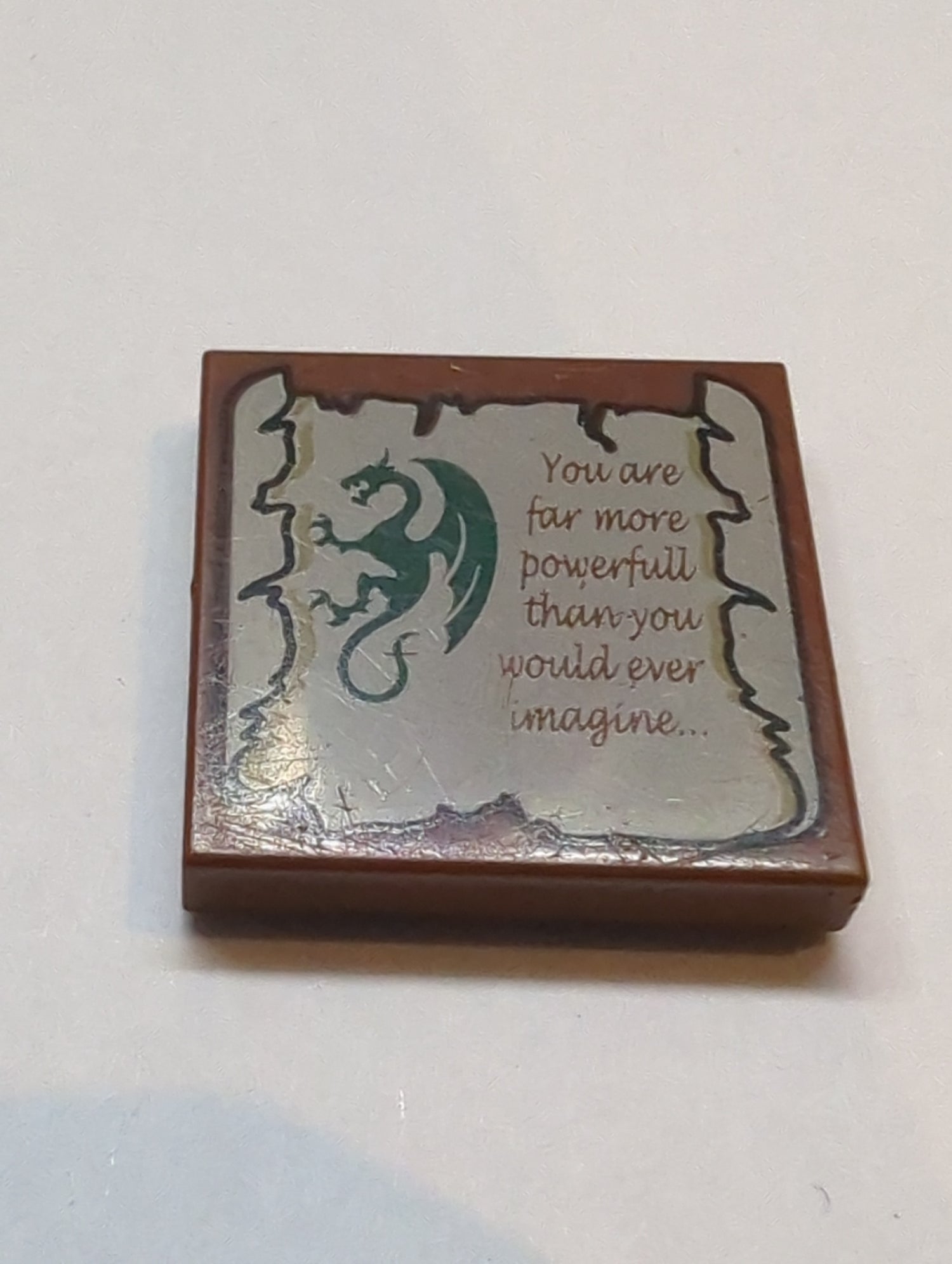 2x2 Fliese bedruckt mit Dragon and Scroll with 'You are far more powerfull than you would ever imagine...' Pattern neubraun reddish brownpie)