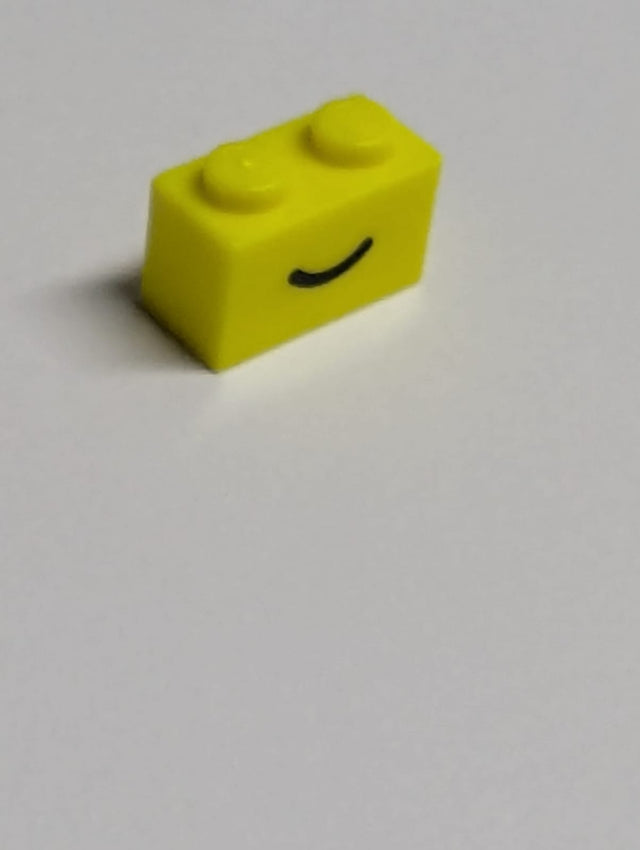 NEU Stein 1 x 2 mit schwarzem Lächelmuster in Form einer gebogenen Linie neongelb