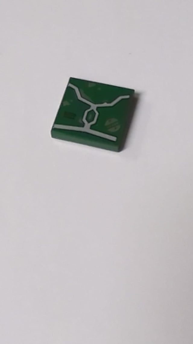 NEU Tile 2 x 2 with SW Mandalorian Boba Fett Armor Plates with Light Bluish Gray Lines, Silver Battle Damage and Agrarian Emblem Pattern dunkelgrün dark green