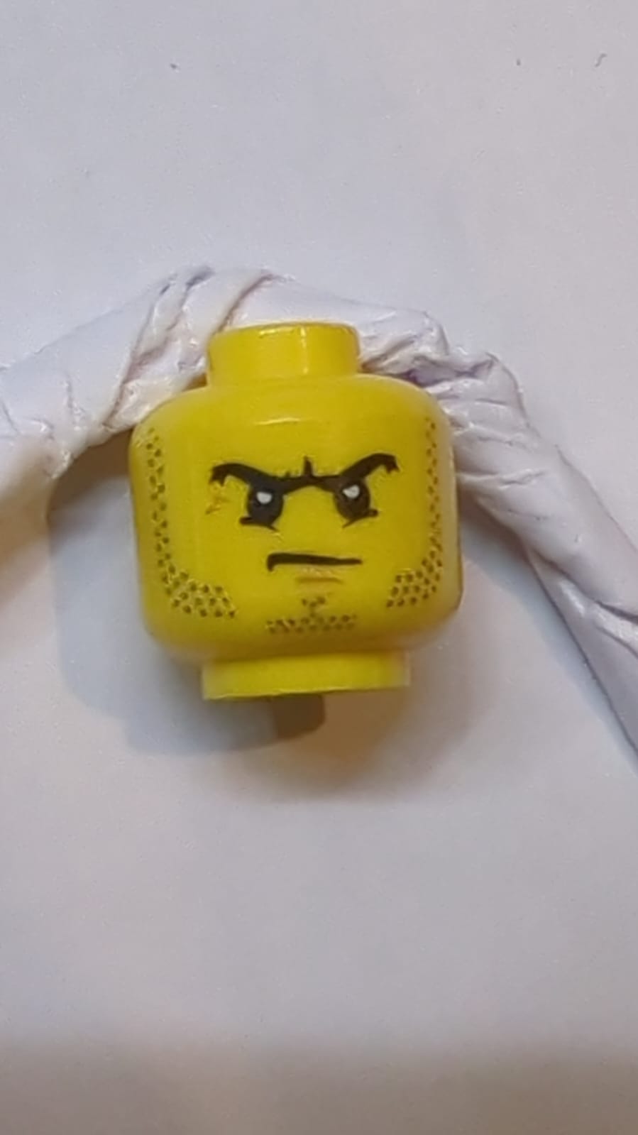Kopf Bartstoppeln, schwarze wütende Augenbrauen und Stirnrunzeln, Muster mit weißen Pupillen