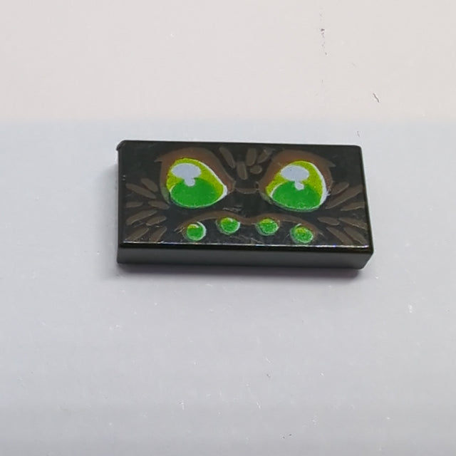 1x2 Fliese bedruckt with Green Eyes and 4 Green Dots with Brown Hairs (Spider Face) schwarz black