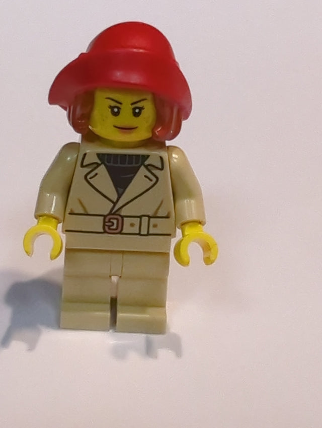 NEU Town Minifigur Tudor House Patron / Food Critic - Hellbraune Jacke und Beine, roter Hut mit Haaren, weich gefaltete Krempe twn510