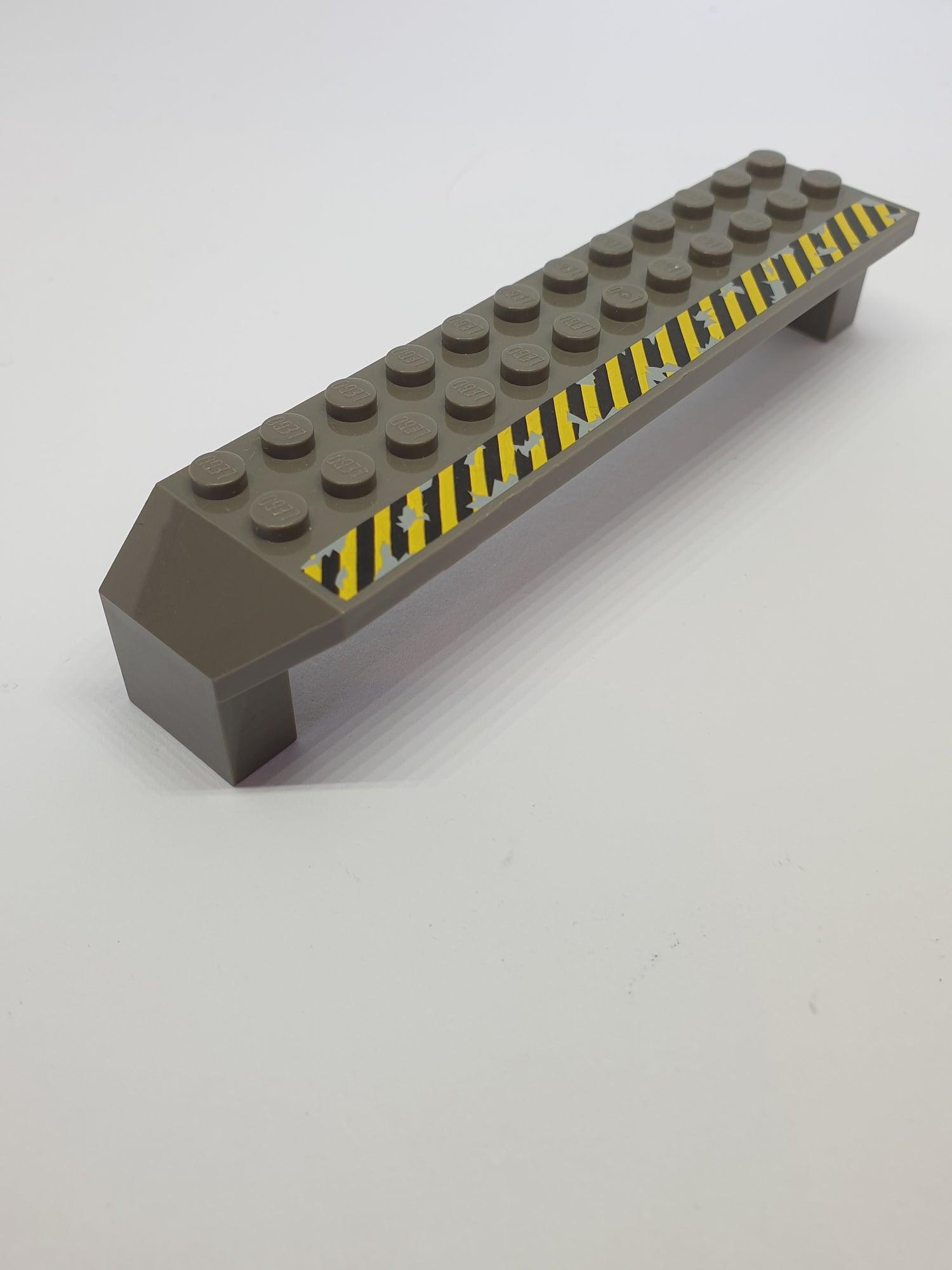 2x14x2 Bogenstein Stütze bedruckt mit Black and Yellow Danger Stripes on Top Pattern altdunkelgrau dark gray