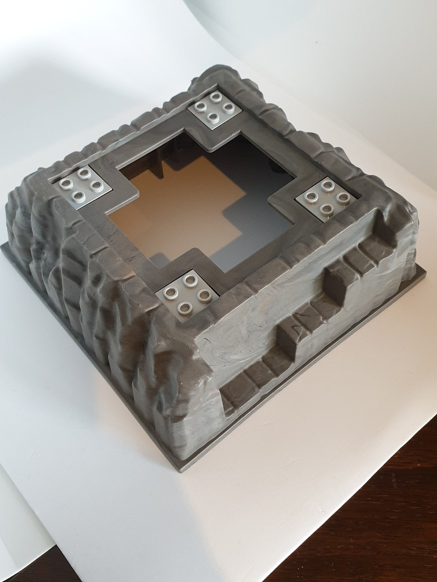 16x16 Bauplatte 3D Platte Berg 4 Löcher neudunkelgrau