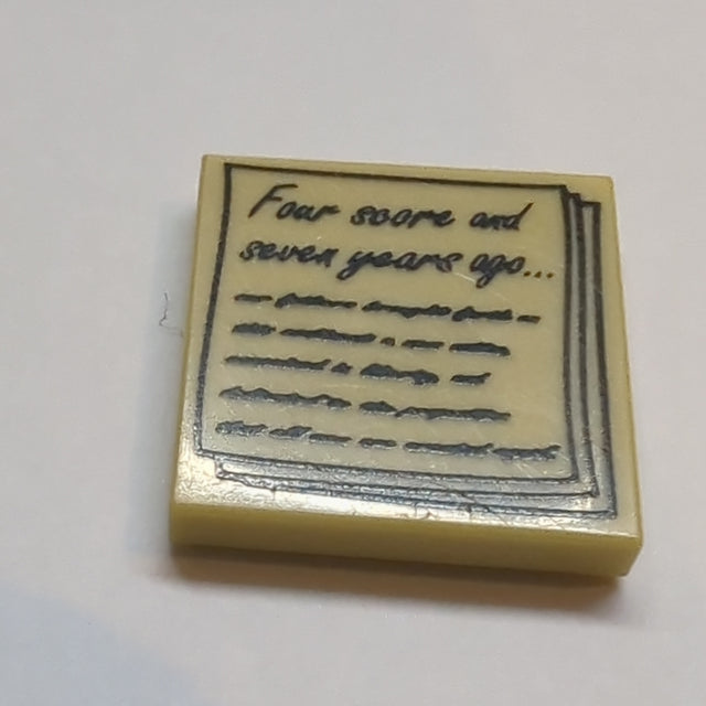 2x2 Fliese bedruckt mit 'Four score and seven years ago...' Gettysburg Address Pattern beige tan