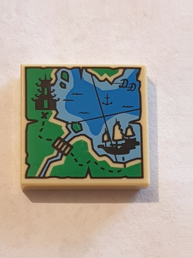 2x2 Fliese bedruckt with Map Ninjago with Pagoda and Ship Pattern