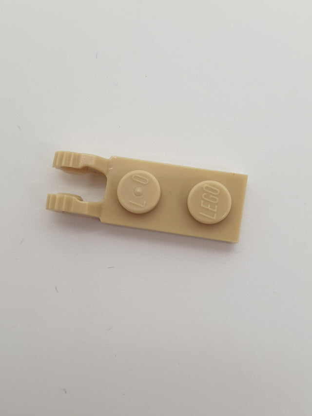 1x2 Scharnierplatte mit 2 Fingern mit Nut beige tan