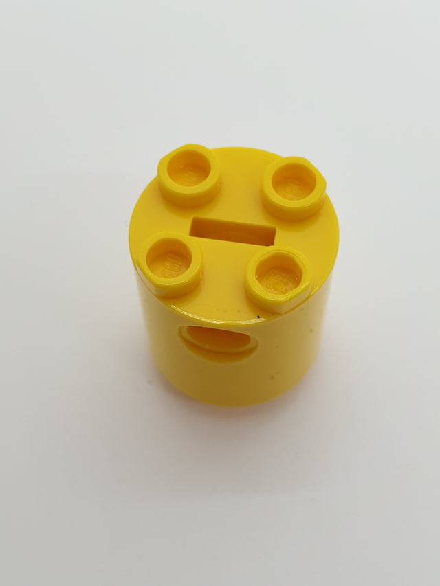 2x2x2 Roboter Körper (R2D2) Stein rund mit x im Boden (Achs-Halter) gelb