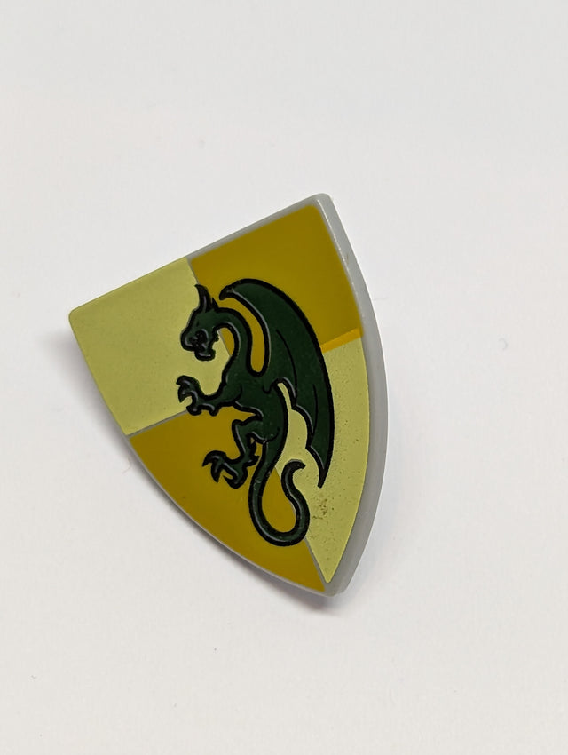Schild bedruckt Triangular with Dark Green Dragon on Bright Light Yellow and Ochre Quarters Background Pattern neuhellgrau light bluish gray