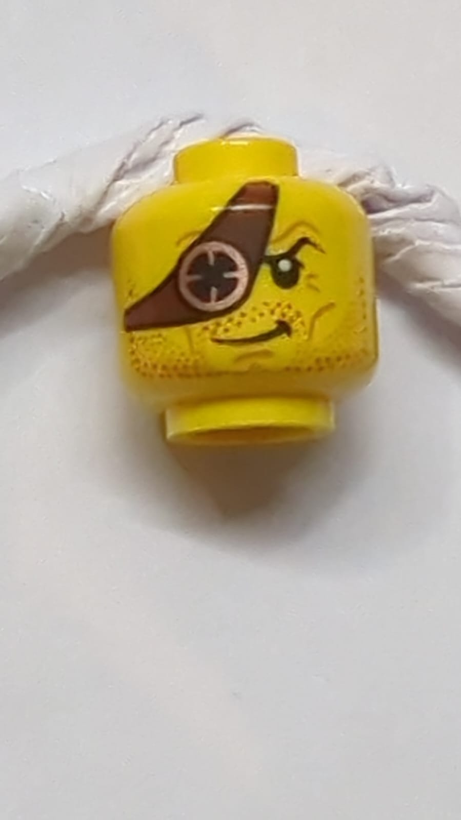 Kopf Bartstoppeln Dunkelrot, rötlich-braune Augenklappe mit Kupfer-Okularmuster gelb