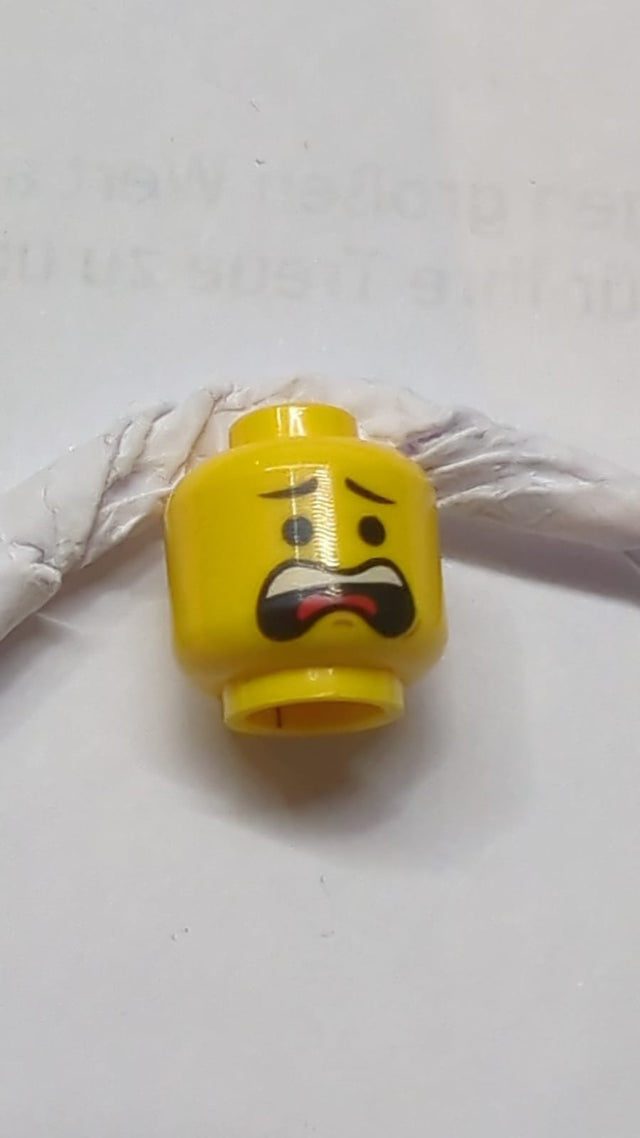 Kopf Doppelseitige Schwarze Augenbrauen, Schiefer Lächeln / Offener Mund, Erschrockenes Muster (Emmet) gelb