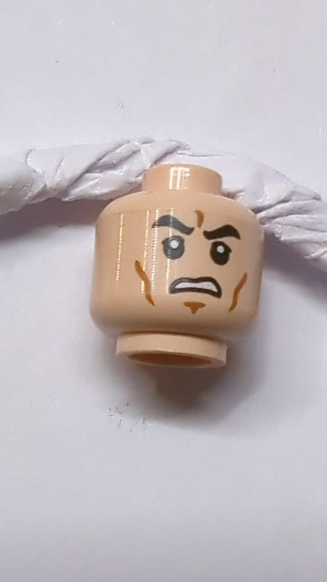 Kopf von LotR Gandalf, dicke graue Augenbrauen, Lächelmuster nougat (hell)