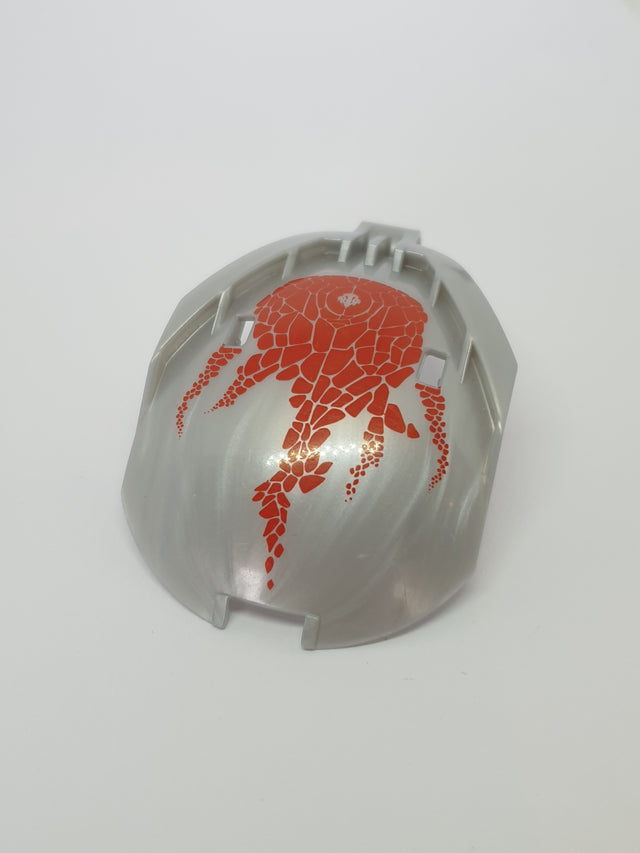 Bionicle 4x5x7 Bohrok Windschutzscheibe bedruckt with Red Scales and Tahnok-Kal Logo pearl light gray