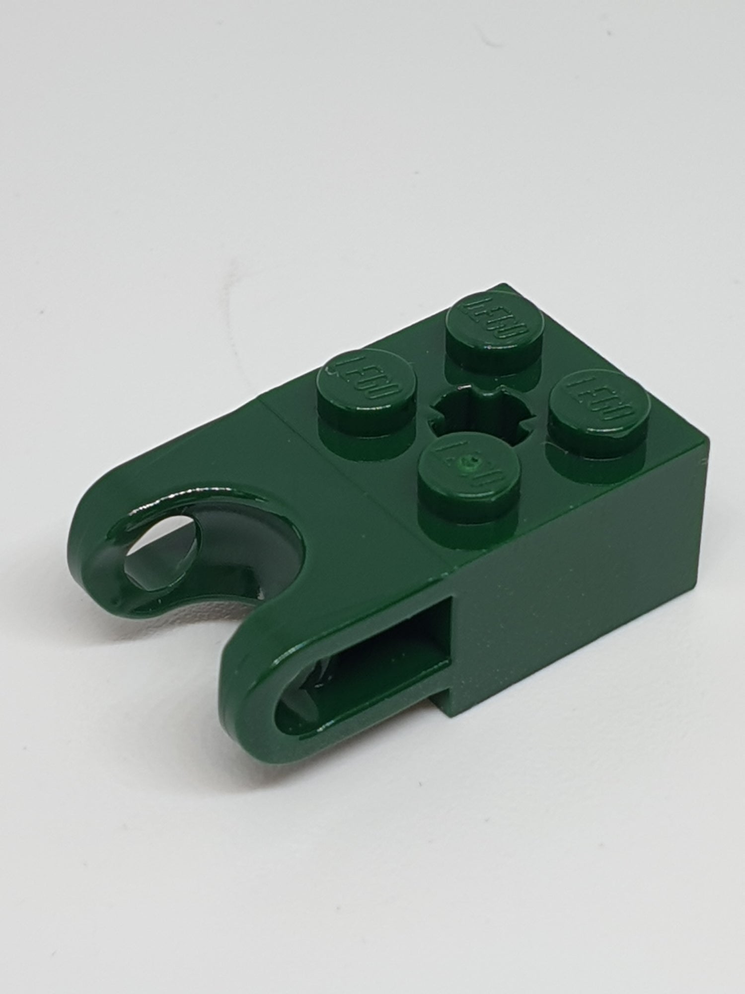 2x2 Technikstein mit Achsloch und Kugelhalter dunkelgrün